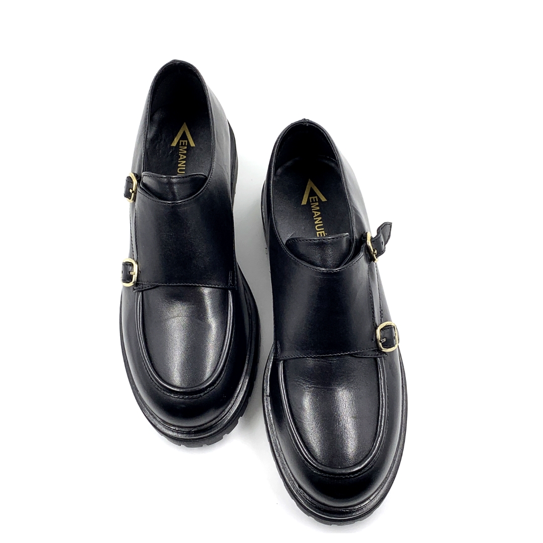 Δερμάτινα Brogues EMANUELLE VEE μαύρα, με μικρές χρυσές αγκράφες, σε στρόγγυλη φόρμα.