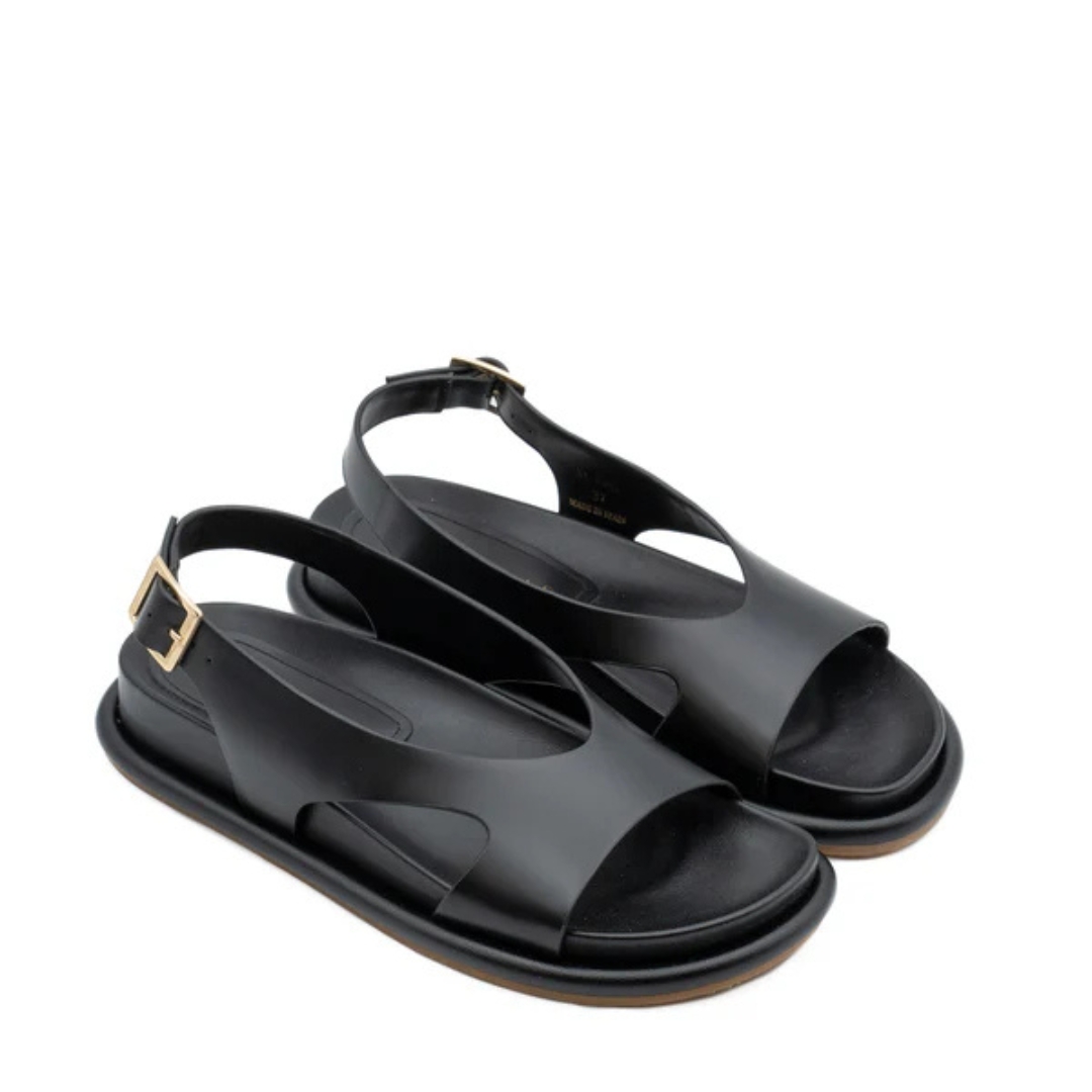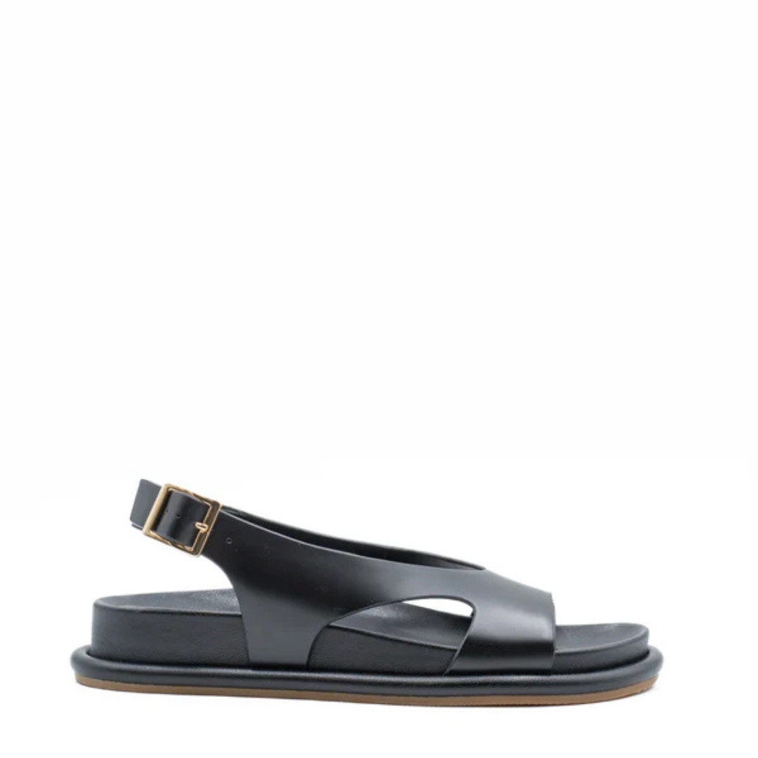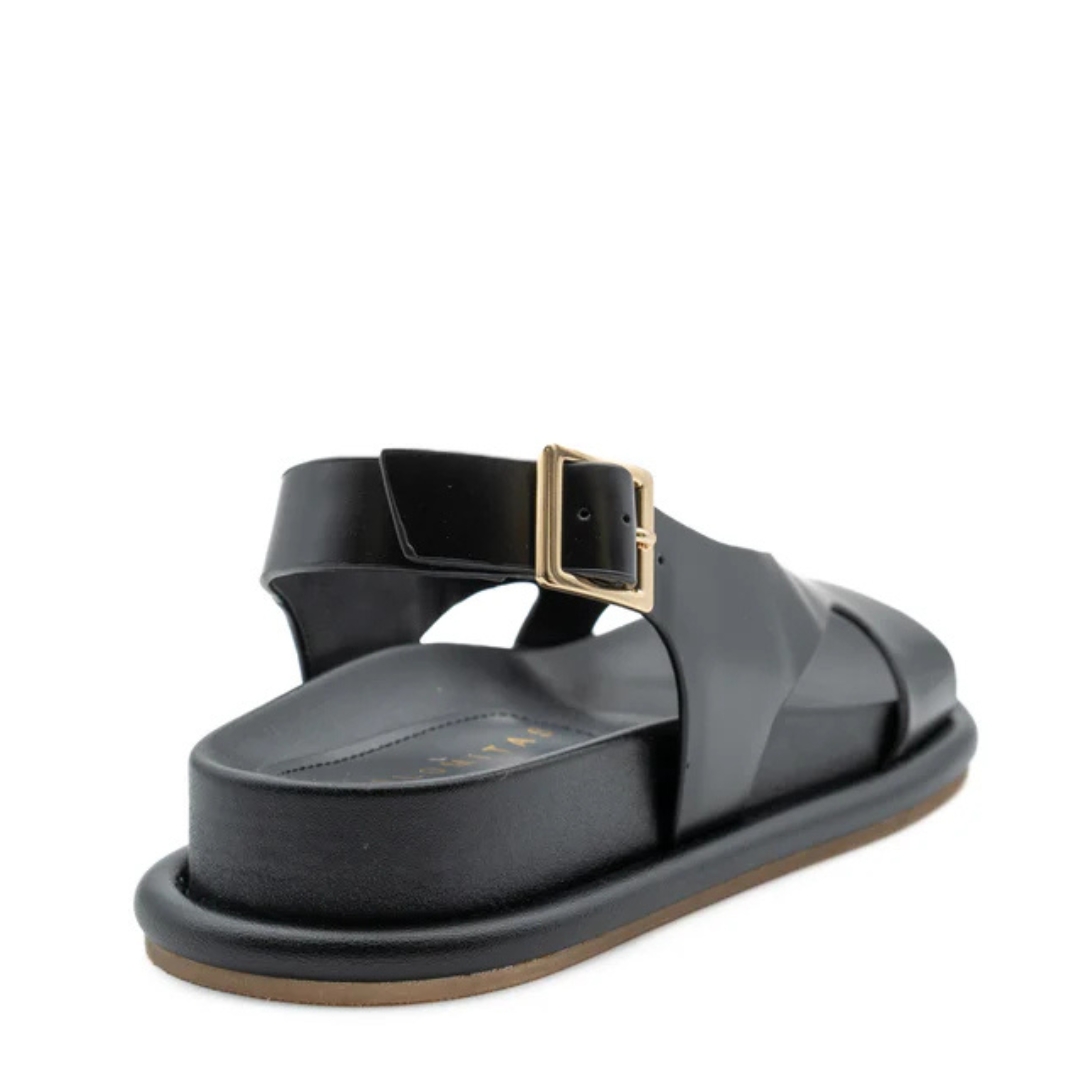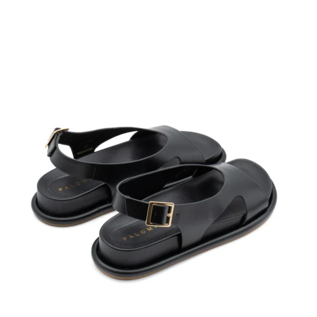Σανδάλια Calista PALOMITAS δερμάτινα μαύρα, με 4εκ πλατφόρμα. Μαλακά και ελαφριά, ιδανικά για καθημερινή χρήση.