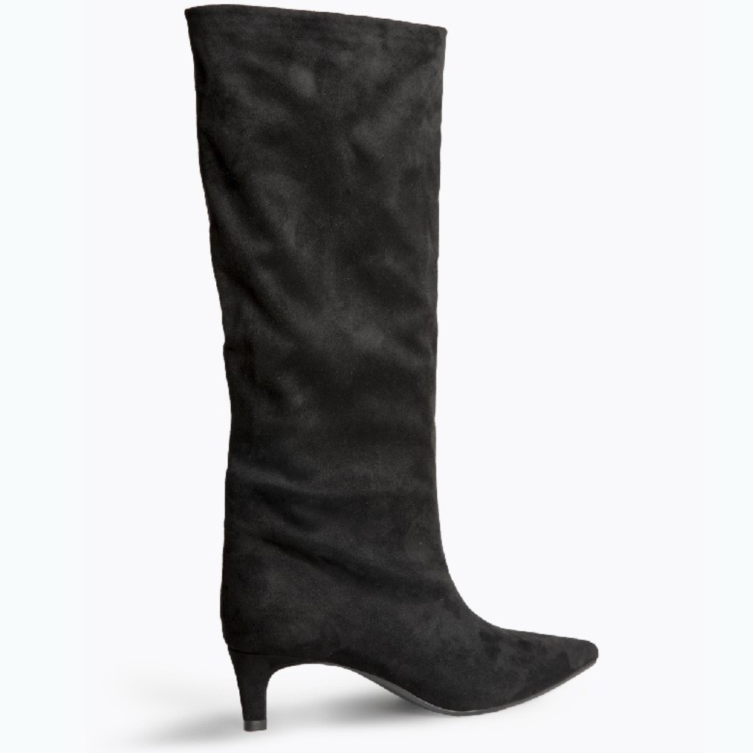 Kitten Heel Μπότες CORINA, σε alcantara μαύρο, μυτερή φόρμα, μισό φερμουάρ και 3εκ τακούνι.