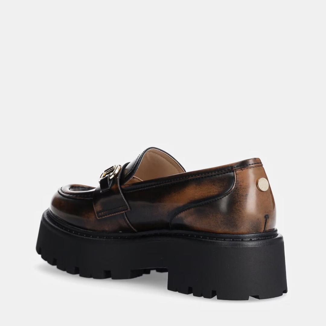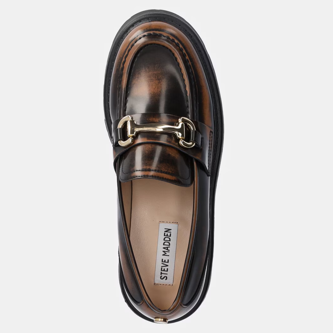 OCCUPY Loafers STEVE MADDEN δερμάτινα, σε degrade καφέ απόχρωση με χρυσή μεταλλική καδένα.Chunky flatform 5εκ σόλα.