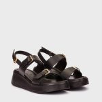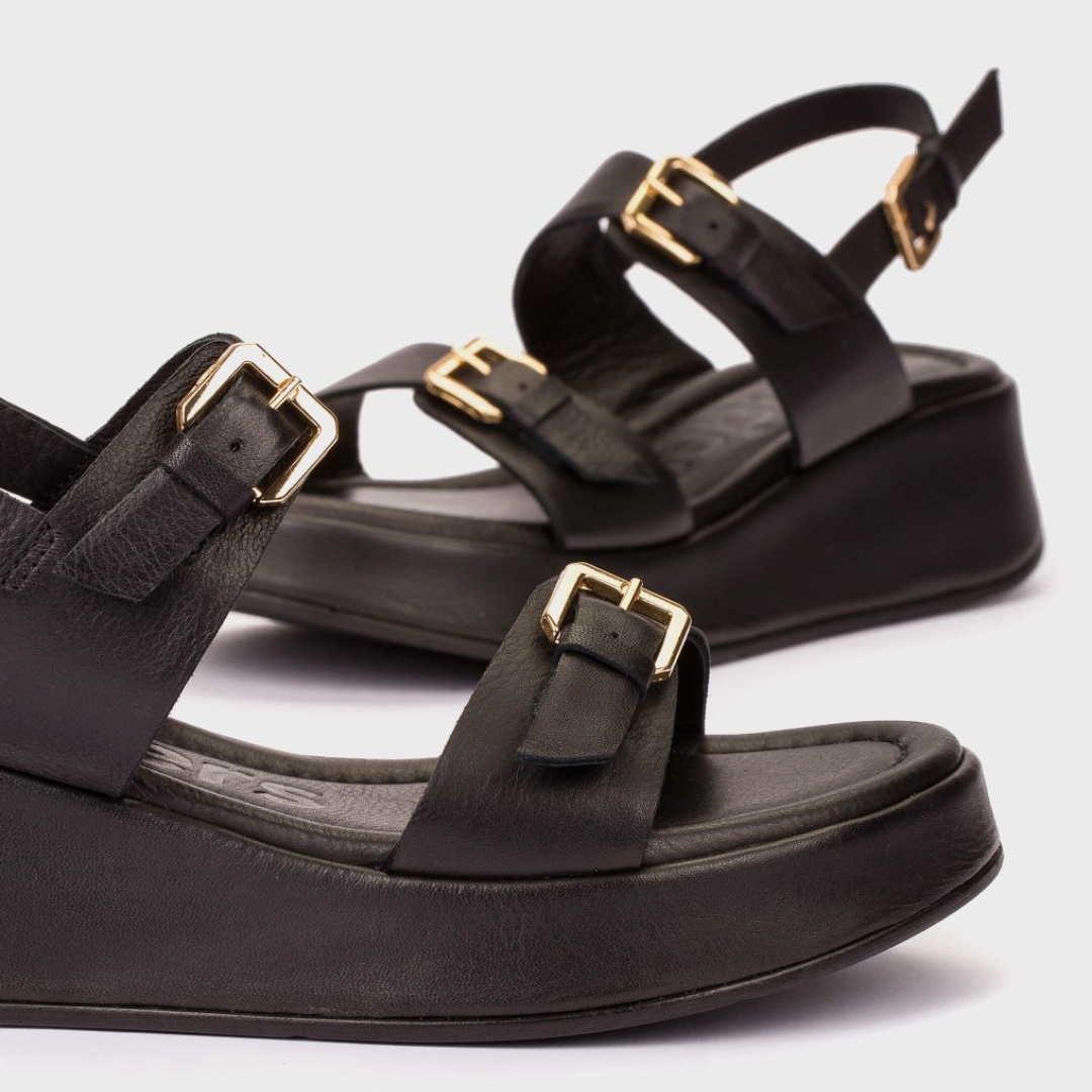 Flat sandals made of black leather. Its clean-lined design is structured with wide adjustable straps that embrace the instep and heel, offering comfortable and secure support without sacrificing visual lightness. Its sole, created with WondersFly™ by XL EXTRALIGHT® technology, guarantees exceptional lightness and extraordinary comfort. In addition, the MemoryGel insole adapts perfectly to the foot, providing comfort with every step.
