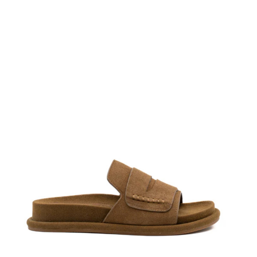 Slides Caliope PALOMITAS σε καστόρι δέρμα καφέ, τύπου footbed.