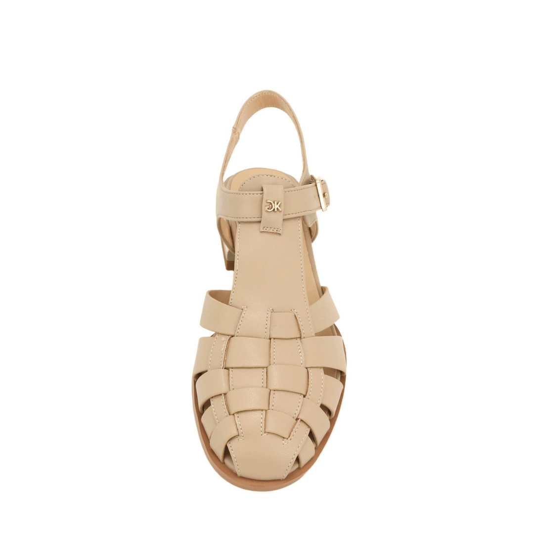 Slingbacks Flat GIANNA KAZAKOY σε pvc μπεζ, σε πλέξη μπροστά και δέσιμο με λουράκι. Τακούνι 3εκ πλακάκι με χρυσό διακοσμητικό.