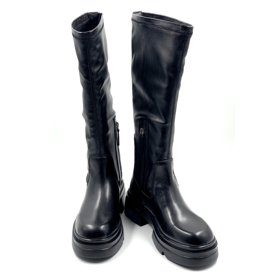 Stretch Boots EMANUELLE VEE, δερμάτινη με ελαστικό το πάνω μέρος και chunky σόλα.